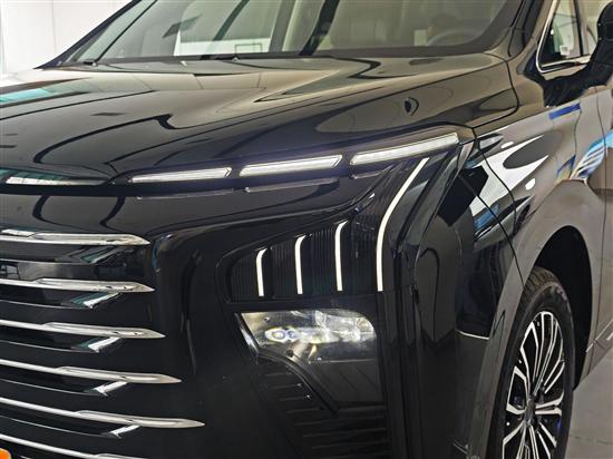 细节部分,大灯组尺寸非常夸张,覆盖了车头较大的面积,对于这个体型的车来说,能够带来更强的体量感。此外,大灯造型也更加犀利,尤其是日行灯带,点亮后具备很强的辨识度和科技感。