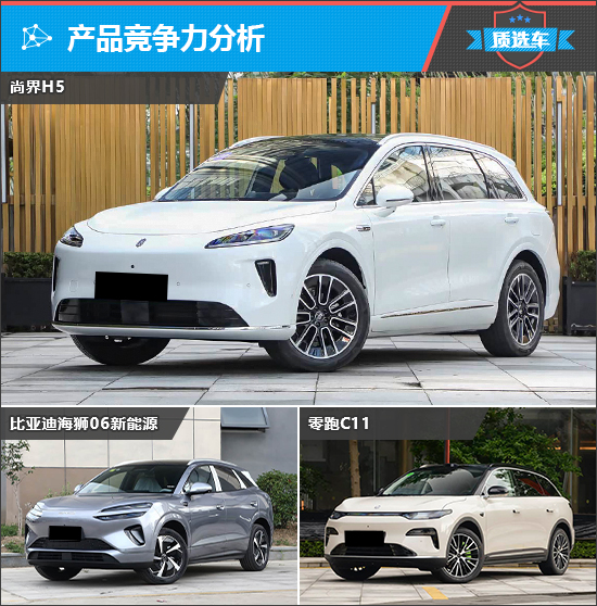 尚界H5定位为中型SUV,客观来讲,在国内15-20万元这个价格区间内,能够与之匹配的竞品车型数量确实相当庞大。综合考虑售价以及品牌影响力,最终锁定了两大核心对手,分别为比亚迪海狮06新能源以及零跑C11。