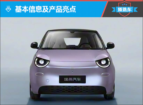 埃尚A100C的外观设计灵巧可爱,提供紫定行、白月光、被圈粉、一定银、放青松、很辉黄、嘿嘿黑等多种靓丽配色,整体风格极具青春气息,十分讨好年轻消费者。前脸通过型面变化与灵眸闪耀大灯的搭配,在萌趣中又透露出几分锐气,令人印象深刻。尺寸方面,新车长宽高分别为3285mm*1708mm*1550mm,轴距1980mm。