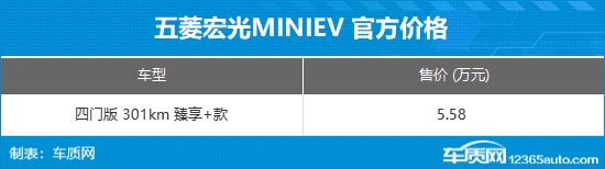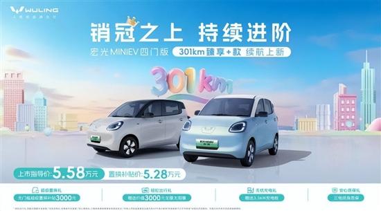 11月11日,五菱宏光MINIEV四门版301km臻享+款正式上市,指导价为5.58万元,置换补贴价5.28万元。同时,官方还推出了多重权益,包含赠送价值3000元龙膜太阳膜、赠送充电桩及安装服务、三电终身质保等。