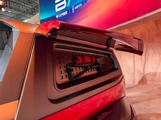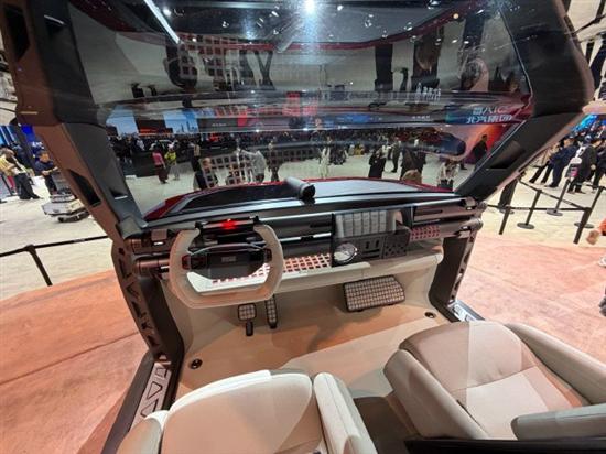 下包围结构选用更具功能感的粗壮保险杠,结合展车的大尺寸越野轮毂,呈现出明显的抗冲击姿态,为后续车型的通过性预留了想象空间。