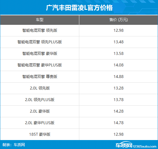 12月22日,广汽丰田雷凌L正式上市,此次共推出10款车型,售价12.98-14.88万元。新车主要针对轴距进行加长,并采用家族全新内饰设计。动力方面,雷凌L提供1.8L油电混动、2.0L自然吸气以及1.2T涡轮增压发动机车型可选。