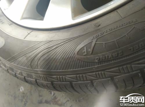 上汽通用别克君越固特异轮胎鼓包,以前看没在意,现在鼓大了。轮胎太差!