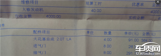 车辆于今年9月中旬,发动机发生故障,拖旭龙别克4S修,要拆缸维修费用1万多,修好了,开回来了,今天拆开火花塞内窥检查发动机积炭情况,却发现火花塞还是我自己购买的进口NGK火花塞,并未更换成通用专用火花塞,顿时气恼,4S不仅仅维修价格昂贵,甚至连维修都要做做手脚,动动心思,火花塞没换,那其他看不见的东西是不是也会如此?修车花了1万多,配件罗列了一大堆,更换的到底有多少,发动机到底修没修好?例行检查机油,机油加注量超出上线一半多,这就是4S的专业?如此技术、诚信比不上路边的维修店。请看维修清单上标注的火花塞项。在此选择投诉,是为了让广大消费者看到,引以为戒。远离通用。