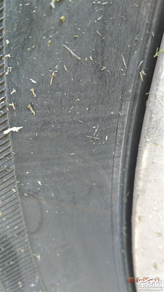 轮胎靠近轮毂的部分出现密密麻麻龟裂纹。