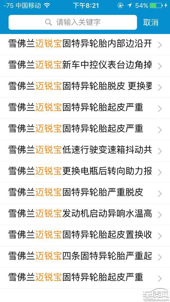 前轮轮胎半年开始起皮,后来越发严重,于今年才知道是这批次车轮胎都有的问题,找了四s店,说不是问题,要求车主继续用,或者加钱248元换一根,他们自己打自己脸,没问题怎么能换,还有怠速抖动,不稳,说洗节气门,450元,但是不保证好使,也就是说抖动可能依然存在,打了雪佛兰的400,依然不承认是质量问题,以出保推脱,我很愤怒!我截图了,看看迈锐宝车主有多少轮胎问题的,是我一个人吗?