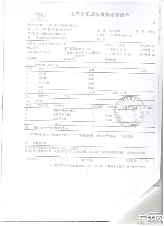 投诉编号:【170210】 投诉时间:2016-12-01 11:15 投诉品牌:上汽通用别克 投诉车系:君越 投诉车型:2016款 20T 双离合 精英型