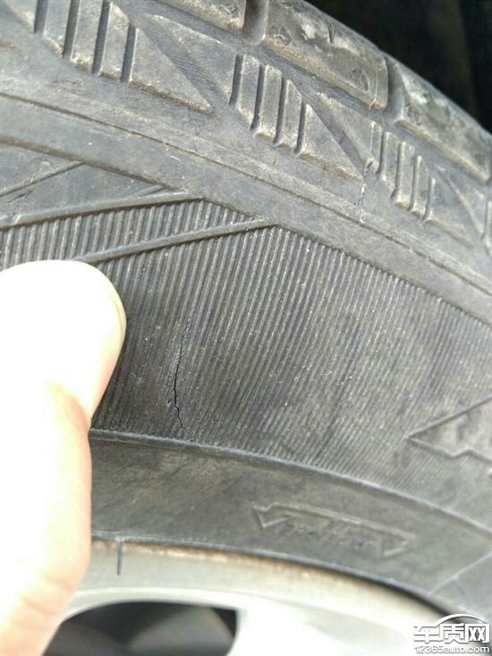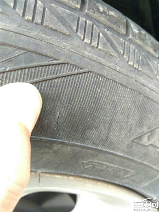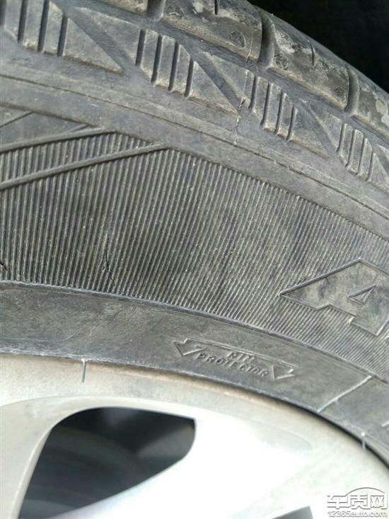 别克君越固特异轮胎外侧掉皮开裂严重,2014款君越2.0T精英款 固特异轮胎右后轮轮胎侧面开裂。