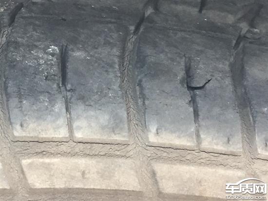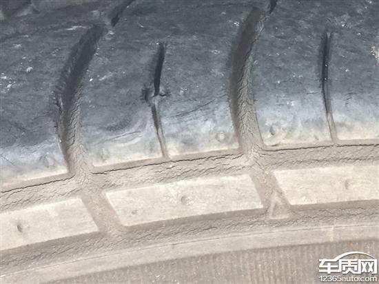 2014年10月购买的2013款英朗GT 1.6L,质保期内右前轮胎裂纹掉皮老化严重,整整一圈都是裂纹;和其余3个轮胎相比,胎面掉皮严重。2017年7月10号看到右前轮胎比较瘪,用胎压仪器一测才1.6的胎压,其它3个胎压都是2.5。2017年5月9日刚在天津汽车保养,这才两个月就只有1.6胎压,行驶不到2000公里。反复仔细检查没有扎钉,轮毂也无异常。这才仔细查看轮胎,发现与其他轮胎明显不一样,其它轮胎都没有胎纹缺损掉皮。