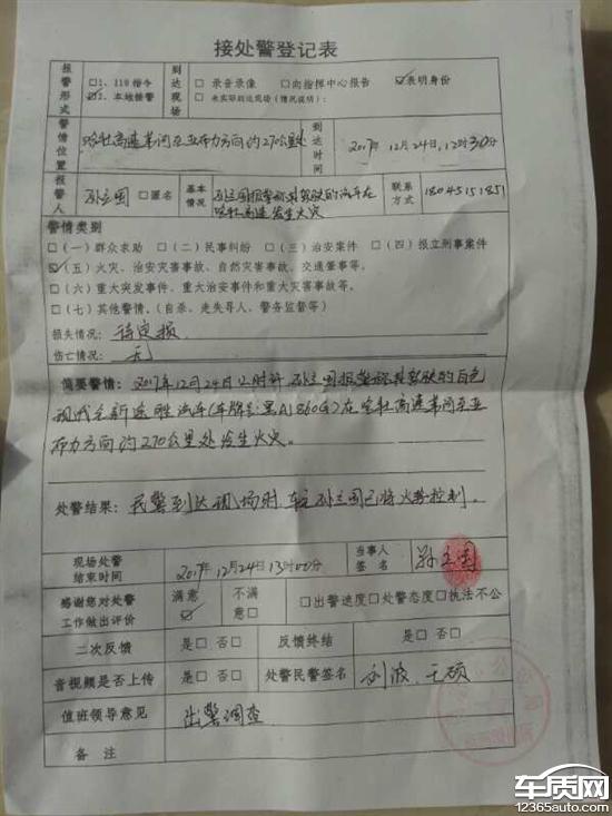 2017年12月24日,在哈牡高速,苇河至亚布力路段。车辆在高速公路行驶中。突然加不上油门,于是紧急制动靠边停车。下车查看。当打开前引擎盖,发现有火苗窜出。于是使用灭火器,和路边的积雪开始灭火。火被迅速扑灭。多次拨打厂家,4s店电话,无人来处理。车至今扔放在高速公路最近出口的镇内。多次拨打厂家服务电话,4S店电话。仍然没有给出任何答复!厂家无任何服务!无任何答复!
