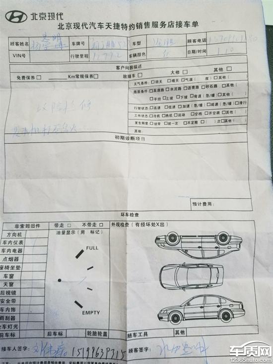 北京现代厂家回复:特约店为客户检测车辆,客户反馈的情况未重现。