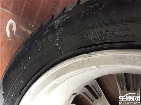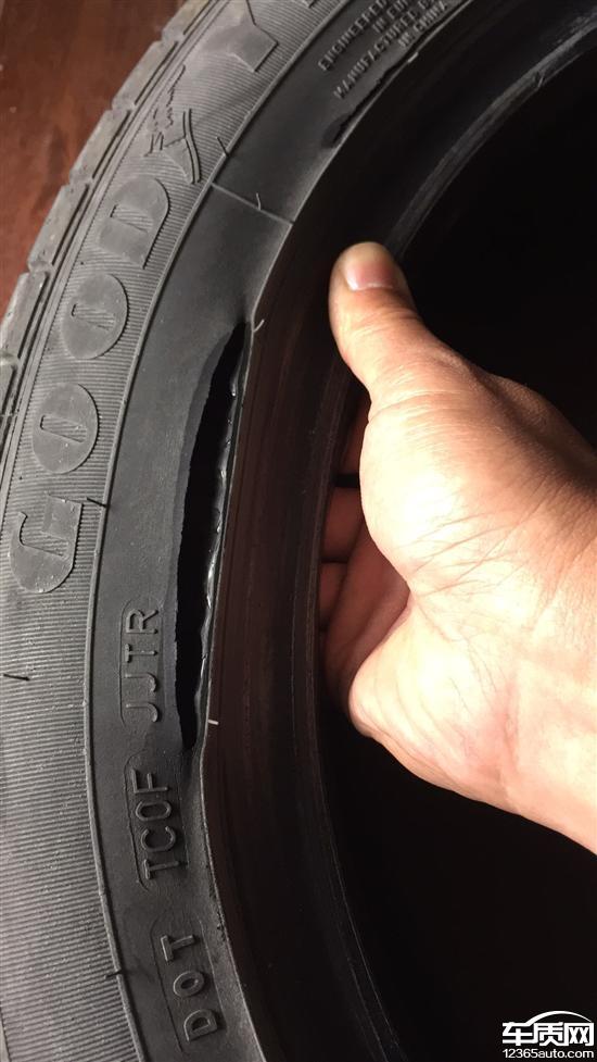 原车固特异轮胎内侧自己无故开裂,已经漏气,还是前轮,非常危险!