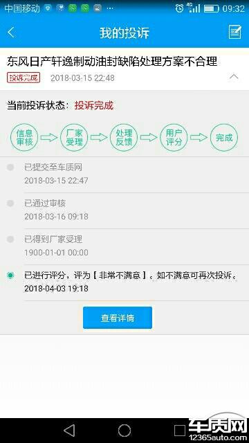 投诉编号:【270462】 投诉时间:2018-04-13 17:54 投诉品牌:东风日产 投诉车系:轩逸 投诉车型:2016款 1.6XL CVT 豪华版