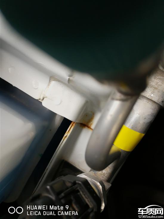 发动机舱生锈,主要是与大梁焊接点处较为严重,其他地方也有,生锈的地方多是没有抹胶,原车抹胶的地方没有锈蚀。