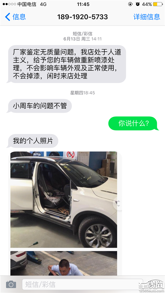 我的车现在掉漆严重,门有错位,4S店售后经理给予的结果就是不管,态度依旧和从前一样,借着出差的理由躲避给顾客处理问题,感觉4S店是他家的,给其打电话他也不接,事情也不处理,把我们消费者当猴耍,本人有视频和录音为证,我去正常维权,对我有推搡躲避和轻度人身攻击,还因我车停在他们车间门口进行了报案,好在人民警察分的清黑白,这样的4S店上下级男女关系不正常,总经理和售后经理乌烟瘴气,对我们顾客没有一点权益保障,希望有关部门要对这样的4S店进行严厉调查,不能因为领导跟下级有不正当男女关系就对下级有严重偏袒,促使下级去威胁,恐吓,侮辱消费者,每次去维权还得让他们报警。
