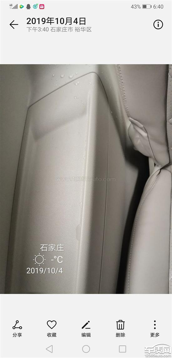 2019年9月18买的车,2019年10月4号石家庄下雨才发现右后方漏水而且挺严重。非常寒心30万买个车居然漏水,车严重的质量问题什么补偿也没有无人问津,心里太堵了,强烈想退车。