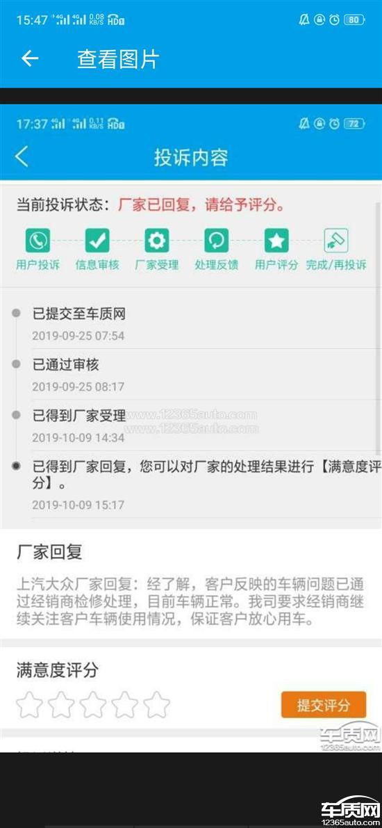 上汽大众厂家回复:经了解,客户车辆情况正常,经销商已联系客户沟通解释,客户未能认同;我司要求经销商继续做好客户抱怨跟踪处理,做好客户沟通解释工作。