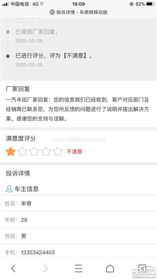 一汽丰田厂家回复:您的信息我们已经收到,客户对应部门及经销商已联系您,为您所反馈的问题说明了情况。感谢您的支持与谅解。