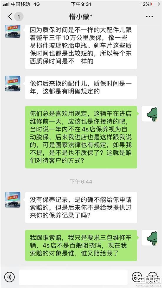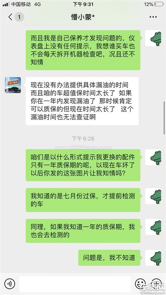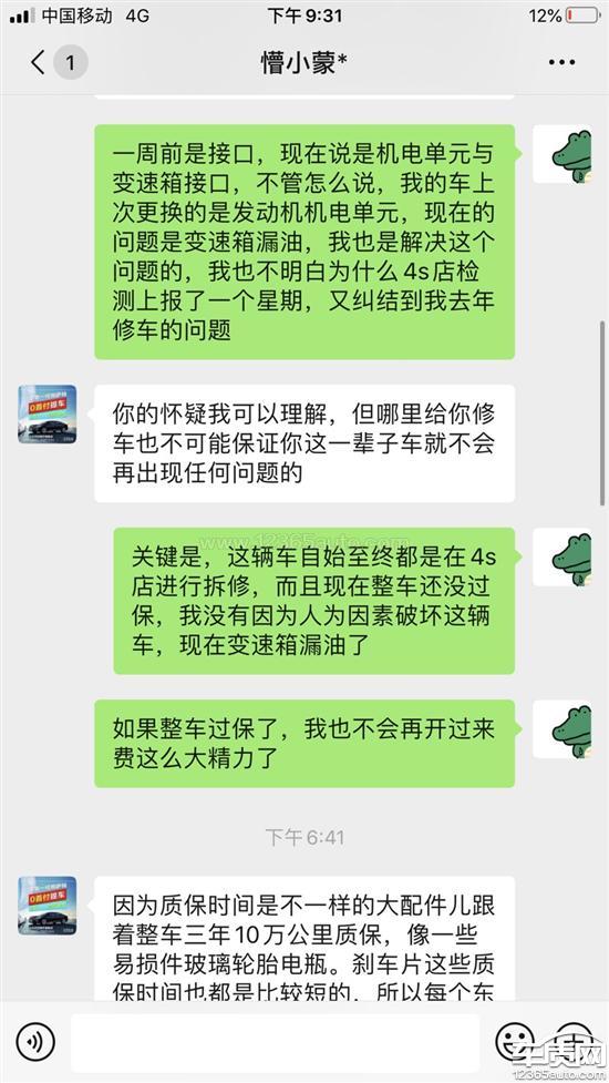 本人于2017年7月初购车,2018年年初出了一次事故,车在4s店修了一个月,换了发动机机电单元等配件,共计4万余元(走的车损险)。2020年3月份,车子出现左后窗玻璃升降故障,天窗开关故障,我想着趁车子快过质保期了好好检测一下,有问题在4s店修一下,于是在6月1日保养后让师傅检测了一下,发现变速箱漏油,当天同事开我车进4s店进行质保,工作人员说1年内未在4s店保养视为脱保,态度十分坚决(我的车自4s店首保后都在百顺连锁保养,网上可查公司资质和保养记录),我本人于第二天开车过去,4s店工作人员仍是百般推脱,直到我说国家有明文规定才肯给质保,而后在变速箱漏油这一项目上检测上报数据近一周时间,最终在6月9日给的结论说是接口问题,已经上报批准了,需要等一周物流发货时间,然后又在6月14日上午打电话说需要自费加注变速箱油两桶160元和清洁费,系统重新调试了需要一下备用钥匙,并承诺次日提车,在当天我家人将备用钥匙送去后的下午16时,工作人员跟我打电话说是漏油原因是发动机机电单元需要更换,需要我自费1万三千多元,否则不修。理由是2018年初我更换了一次机电单元,这个机电单元只有一年质保期,现在已经过保了。首先,在2018年年初修车的时候,大概一个月的时间没有任何一个工作人员提示所换配件只有一年质保期,我能想到在三年质保期内修车,同理如果我知情,肯定会在一年内检测配件是否有问题。没有几个普通老百姓买了车以后天天拆开看里面的机器,都是有问题了才会去修,仪表盘上也没有任何提示,谁能知道原厂的东西不和车子一起质保? 其次,发动机机电单元不是易损件,一个一万三千多不是小数目,如果是漏油为什么在提车前的最后一天才检测出来恰巧是我换过的机电单元呢?我问了工作人员,已经检测了一周不是说是接口吗,工作人员回复是发动机与机电单元接口处,我对此说法实在怀疑。 然后,变速箱漏油我留的有照片,看着上面厚厚的一层黑油,谁都能看出来不是短时间内行成的,我也跟4s店人员说明了情况,如果知道一年质保期我肯定会提前检查,工作人员答复是不能确定漏油时间。那么我想说的是,是不是当初就没修好呢? 声明一下,我自买车后只与4s店打过三次交道,服务态度次次扎心,第一次送的免费首保,收取了几百块钱费用,何谈免费?第二次我出车损修车,前前后后不知道跑了多少次,最后还是用了一个月,耽误了多少时间?第三次也就是这一次,我不知道为什么国家明文规定4s店不得以未在店内保养为由拒保,况且我保养的公司也是大公司,工作人员还能以此为由百般刁难,且在最后时候搬出来18年初更换的机电单元只有一年质保期为由收费,为什么最后坏的又偏偏是这儿呢?十几天了最后才知道的吗?那么又会不会本身不是这里的问题呢? 老百姓只求一个公道,我不是一个专业维修师傅,开车有问题了才会修理,我当初选择大众也是因为这个品牌,我只希望不要一次次伤了消费者的心。