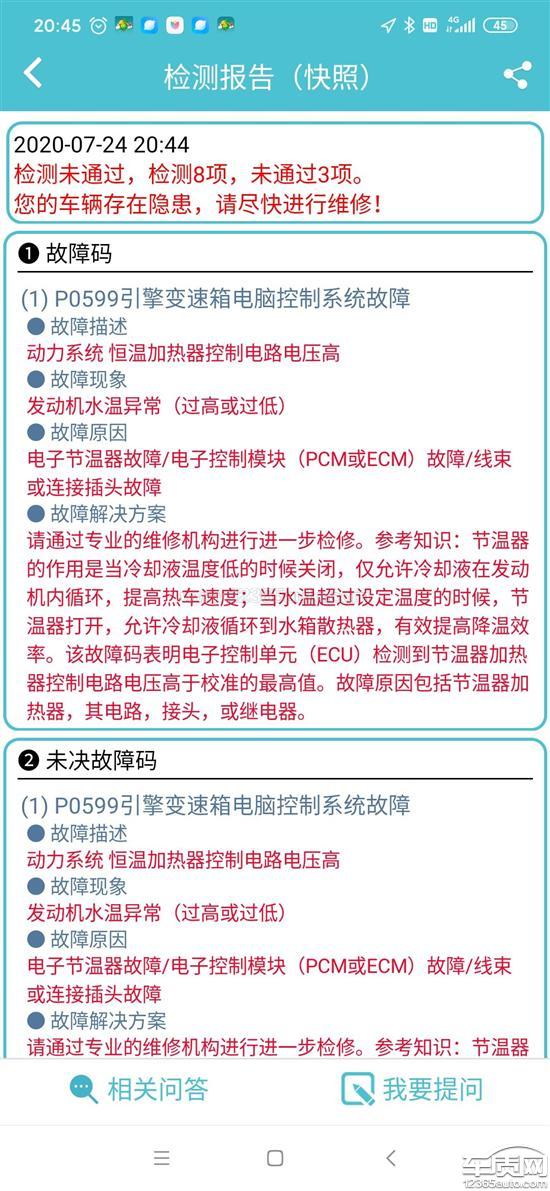 正常使用时出现发动机故障灯亮,检测为节温器故障,不敢开了!大家看看雪佛兰的质量!