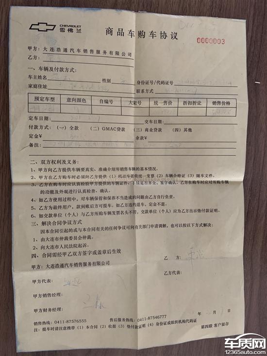 通过汽车之家留下的个人信息想了解科沃兹车相关信息,位于大连市保税区中港北二路9-1号的网络业务员多次通过电话微信等方式邀约,该店开发区活动力度较大等理由将顾客邀约到店,然后转为店内销售接待。在了解汽车的过程中店内销售有以下行为,1.销售报价时要求必须在店内缴纳第一年的保险费用,和车辆购置税。且将这两项的费用提高后,与裸车价格统一打包成为落地价格与顾客协商。本人当场指出国务院商务部关于汽车销售办法第十四条明确规定,禁止车商强制客人店内上保险及收取代办费用。销售予以认可同时针对汽车裸车价格签署了购车意向协议。当时一再和销售确认我要全款提车,且应该是现车不等。但是销售顾问以销售价格过低,需要顾客配合晚十天左右提车,以便通过真全款假贷款的名义骗取厂家补贴为由(以上有销售顾问文字聊天记录为证),本人并未表示同意。销售在协议签订中有意未标明所购车辆详细情况,车型车款提车日期等均未做详细约定。在协议签订第二天本人欲尽早提车,销售视所签协议不顾要求加价提车,同时要求店内缴纳保险及车辆购置税。一副出尔反尔的态度,口口声声你愿意买,协议签订的价格你提不了,你去起诉吧。2.与浩通销售顾问沟通多次,销售一再的将保险费用从5300一直调整到4000元,但是本人一直坚持国家法律法规和所签署的订购协议内容,至此浩通方面不再予以理睬。无奈将情况如实反馈给通用总部投诉电话。通用客服完全和他们的合作单位沆瀣一气,回复就是你既然签署了协议,你就按协议履行。如果你不想履行你就去起诉,这就是雪佛兰品牌方官方的态度。我只缴纳了5000的意向金,在订购协议中未明确标明所购车型,车辆信息,提车日期等完整的合同约定内容,鉴于这样不讲诚信的商家,我坚决要求退还订购意向金。