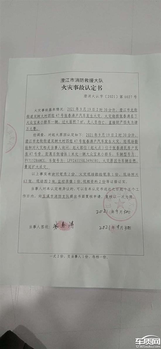 我的车购于2O20年5月1日,在4S店保养了2次,发动机故障报警两次,4S店检测了告诉我偶然故障,到2021年9月19日夜里二点三十分发生爆炸起火,随即我报了火警和110,经澄江市消防大队认定车辆为自燃,联系了4S店没什么解决的意思,他们4S店跟厂家互相推诿扯皮,车辆在质保期内,希望4S店跟厂家给个合理的答复,车辆的三包不落实到位,别让消费者寒心。望厂家跟销售商给我一定的赔偿。