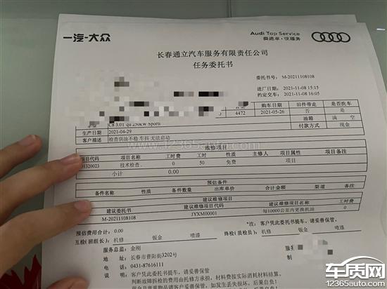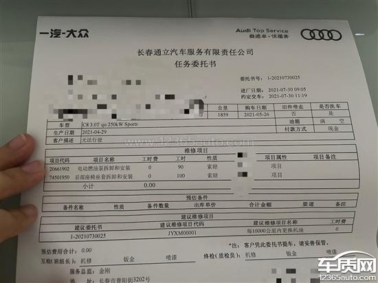 一汽大众奥迪A6L行驶熄火多次维修无法解决2021-12-04车型:2021款 55 TFSI quattro 尊享动感型