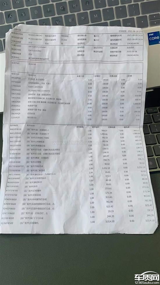 北京现代途胜发动机拉缸要求保修2021-12-14车型:2015款 1.6T 双离合 两驱 智能型
