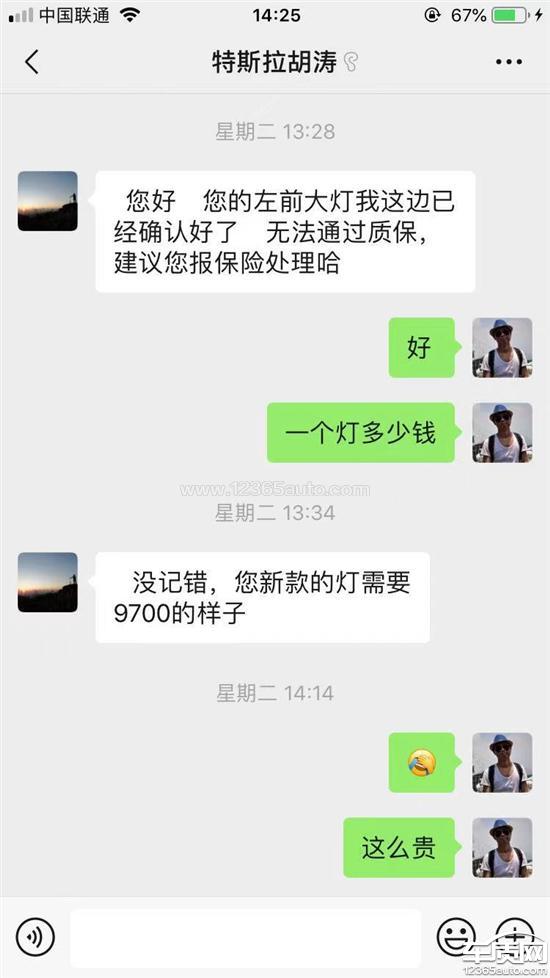 本人于2021年3月20日提车后用了半年在9月13日突然发现白天行驶时左大灯的一条日行灯不亮,右边正常,当初以为是软件故障即联系特斯拉天心服务中心微信号咨询情况(见图一)。由于本人一直在外地没时间处理,过了三个月到2021年12月7日回湖南再次联系特斯拉公司,并预约了上门服务。但到了上门服务当天12月13日当天联系工作人员时却没得到任何回复(见图二)。再不处理就要拖过质保期了,遂于2022年2月13日通过服务中心问询到当日驻益阳的服务人员联络方式上门查验(见图三)。工作人员核实日行灯故障并拍视频上报服务中心以有划痕无裂痕申请更换大灯。最终得到的反馈确实审核不通过,车在路上行驶难免会有划痕,如果仅以此为借口那是有推脱责任之嫌,我作为消费者只想要公平公正的解决方案。如果通过检测发现产品有裂痕导致日行灯不亮,我自行修理便是。但如果是产品质量问题,厂家有必要有责任承担,希望特斯拉有这个担当。