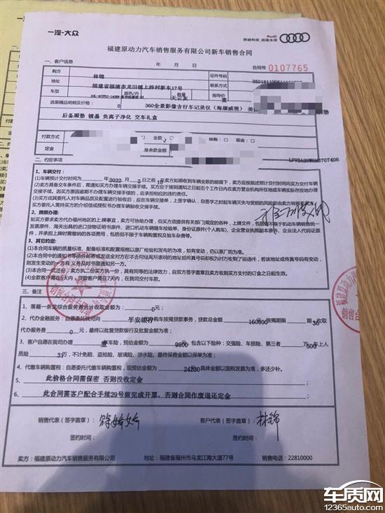 2022年1月28日下午在福州经销商处购买了一辆A4豪华动感,交了3万定金。在咨询过程中,和销售沟通贷款利息有点偏高,是否有其他银行可选择,销售推荐了大众银行,我当场直接否决了,不信任民间借贷。最后销售推荐了平安银行,说好贷款利息是3厘5,1月29日贷款手续完成,平安银行工作人员和我确认贷款利息是3厘8。我立马和销售联系,销售反咬一口,说当时沟通就是3厘8,后续沟通不愉快。协商一致要退还3万定金。2月7日把合同寄出,沟通清楚是7个工作日退回订金,但是至今毫无音讯。多次联系奥迪厂家,都没有解决这个问题。奔着喜欢奥迪这个品牌去购车的,难道奥迪厂家纵容自己的经销商搞骚操作吗?要求尽快退还定金。