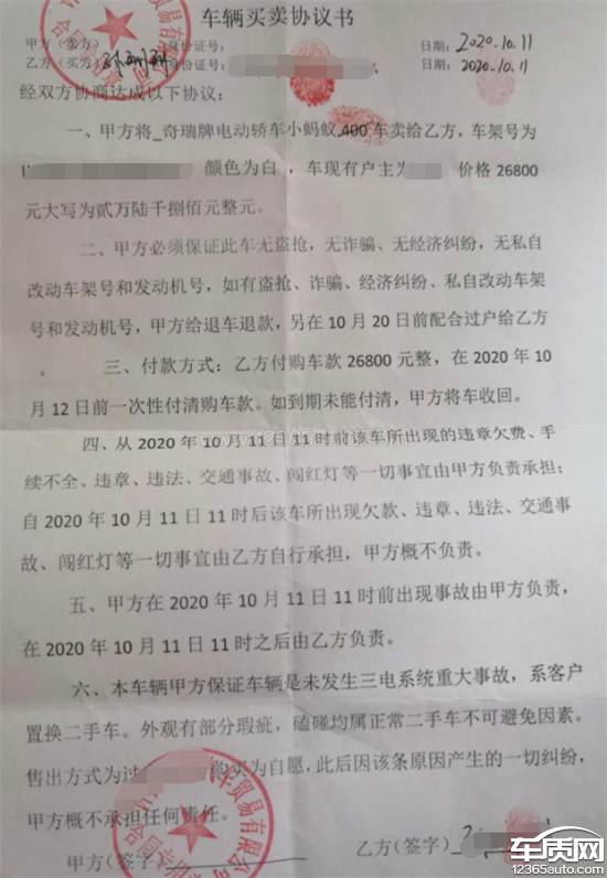 车辆购买一年半,现在电池检测出现问题。不给质保。当时购车时说的质保8年。