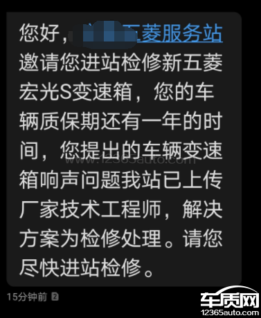 上汽通用五菱厂家回复:尊敬的用户您好!您反馈的信息我们已经收到,将尽快协调相关4S店与您核实处理,厂家也将持续关注后续处理情况,感谢您的支持与谅解。
