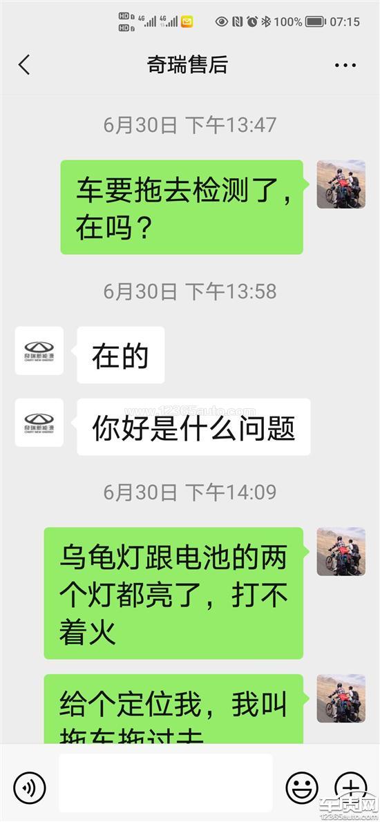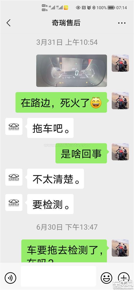 奇瑞新能源厂家回复:我们已就此投诉与相关经销商沟通。经了解,相关经销商正在积极沟通、协商车辆情况的解决方案。后续如果您对相关经销商的解决方案有异议,可以致电奇瑞新能源售后客户服务中心400-883-8888或400-006-2727(冰淇淋),奇瑞新能源会积极监督/协助授权经销商合理、合法地解决您反馈的问题,也会视具体情况提供必要的技术支持。客户满意一直是奇瑞新能源的长期追求,我们也在不断提升服务,让您用车无忧。祝您生活愉快!