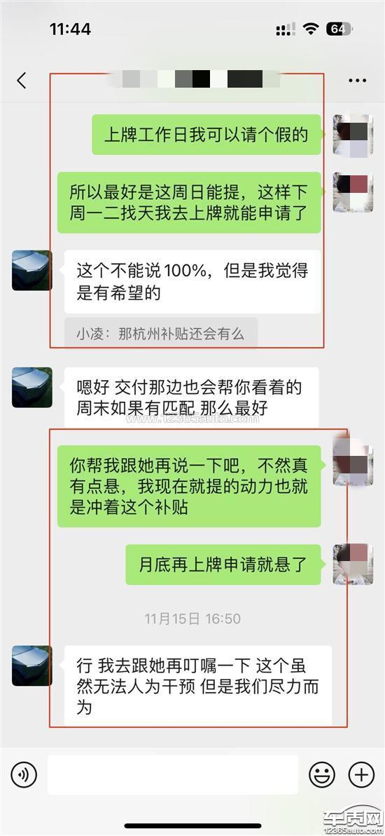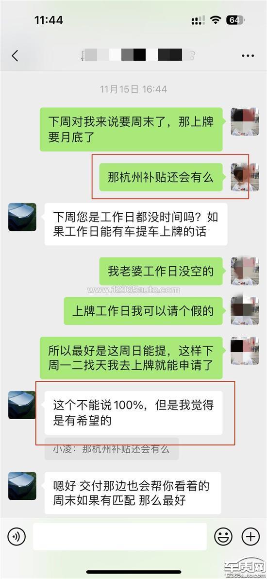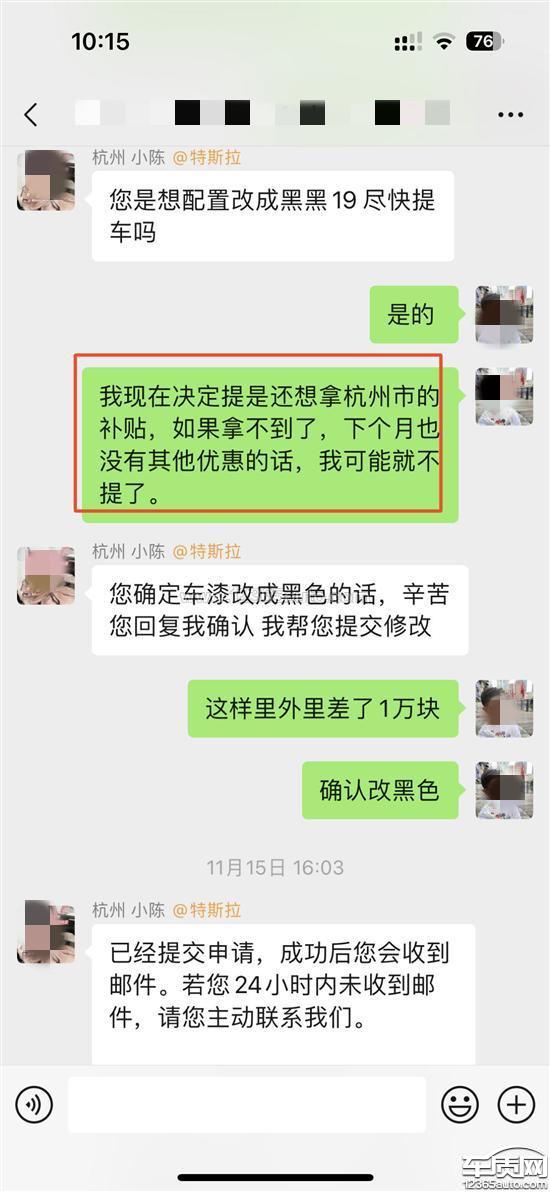 微信上和电话里多次跟特斯拉的销售和提车线上交付人员表明暂无用车需求,不着急提车,现决定11月份就提车就是冲着杭州的6000块新能源补贴去的(萧山区商务局),要求在提车前如果这个补贴已经领完要及时告知我,我会根据当时情况再决定是否提车,直到提车完成特斯拉的销售和提车线上交付一直未告知补贴已领完。反而交付人员提车前一直提醒尽快提车上牌,补贴数额有限。导致我在补贴信息不知情的情况下提了车。另特斯拉官方宣传11月下单提车给8000保险补贴,12月提车只有4000保险补贴,但实际11月下单未提车的客户,可以延期到12月10日前提车,且仍享受8000保险补贴,额外还加6000奖励。(属于诱导客户提前提车)我现在的诉求就是因特斯拉方的过失未及时同步补贴信息,导致我错误时间点提车未能享受补贴,需要特斯拉补偿6000补贴给我。