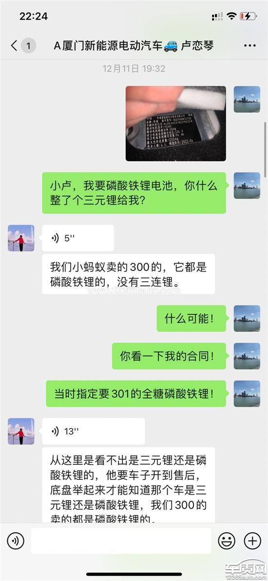 2022年5月5日提的车,购车前再三要求要买磷酸铁锂电池,结果2022年12月11日充电时无意间发现是三元锂电池,4S店负责人态度傲慢,推脱责任!不作为!不给任何方案。要求无理由更换成磷酸铁锂电池或退车!