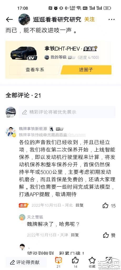 二代大狗的厂家要求保养里程为7500或一年,没有根据不同车主的用车环境进行区分。有的车主充电不方便,用发动机行驶的比较多。我有便利的充电条件,每跑7500公里可能发动机的行驶里程都到不了2000公里,机油机滤就需要换新的?这不光是资源的浪费,也加重了我们车主养车的负担。建议厂家进行系统升级,根据发动机的行驶里程而不是总里程数进行保养。魏派拿铁之前也是这个问题,通过车主反馈已经改了保养要求,他们奋斗可以这样,我们哈弗的车主差在哪?都是一个厂家的产品要区别对待么?
