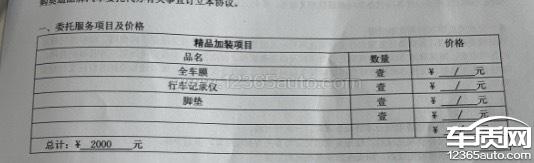 购车合同上膜脚垫记录仪原本谈价格是免费送的,合同上细项也是被划掉的,合计上却被收了2000,由于前一个订车销售离职,交接销售做合同,目前要求退换多收费用并另加赔偿。