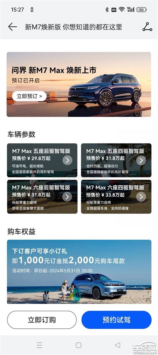 购买的24款新M7,等了四个月,三月份才拿到车,开了两个多月,结果官网就改款,全系升级:激光雷达,减震,外观等。刚提车就变旧款,心里很不是味,联系赛力斯售后及客服均告知目前无补偿方案,无细节透露。诉求:补偿现金,或升级车辆。