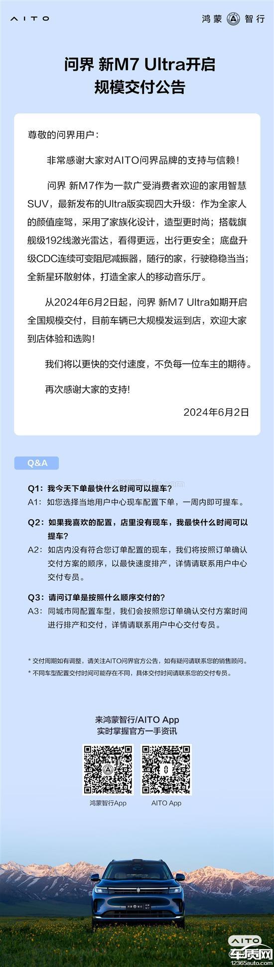 4月23日到华为智能生活馆试驾并观看新m5发布会,询问销售m7近期是否也会发布新款,销售明确告知不会,新款最快也是九月十月发布跟m5一样小改,并说明华为系汽车都不会背刺老车主,举例智界s7减配降价还给老车主补偿1w现金。4月24日大定m7前跟销售再次确定近期不会出新款,下定完销售自行将我交付中心由湖里改到北站,说有现车。4月27日验车,5月1日提车;5月17日app上线新款m7盲订入口,联系销售对方说新款会贵2w3w,5月31日新款m7发布并开启交付,升级了192线程激光雷达,cdc阻尼调节,前脸,星环散射体音响,舒云座椅等,实际价格就贵了6000,销售给的答复是后续可能会有赔付积分,还说新款没啥太大提升。新款上市导致我购买的款式直接停产下架掉价严重,并且该门店存在虚假宣传和虚假承诺,还有就是在用车的过程中发现速度超过40的时候车身共振噪音明显,也不知道是什么情况,希望厂家能够重视车主反馈的问题。