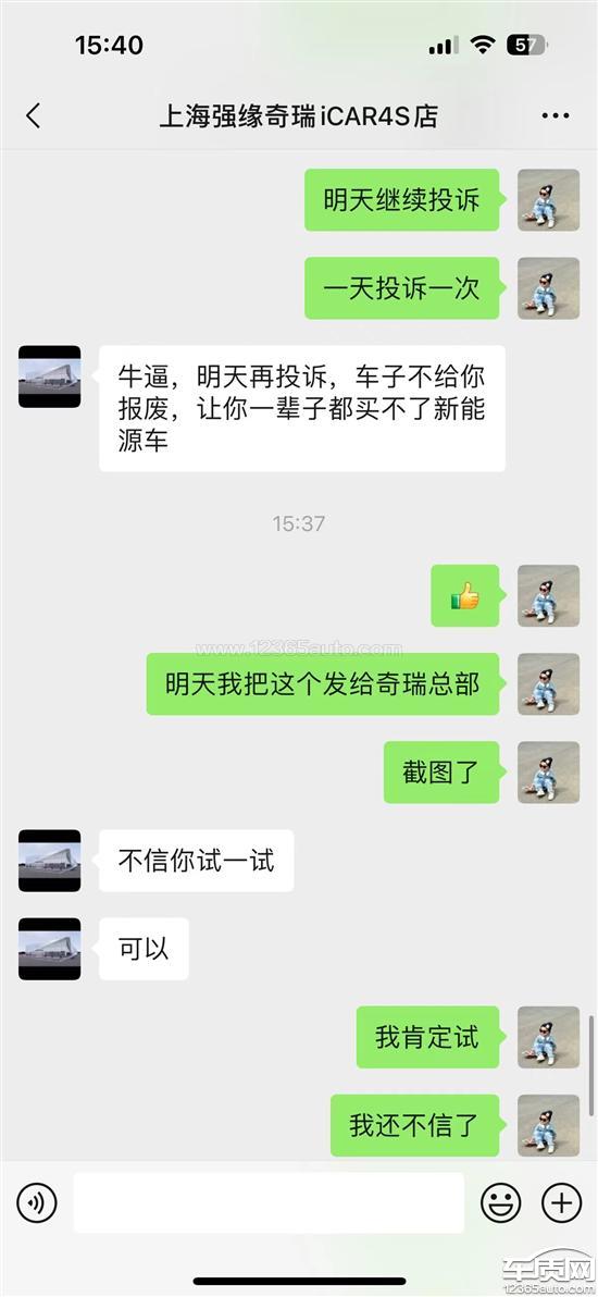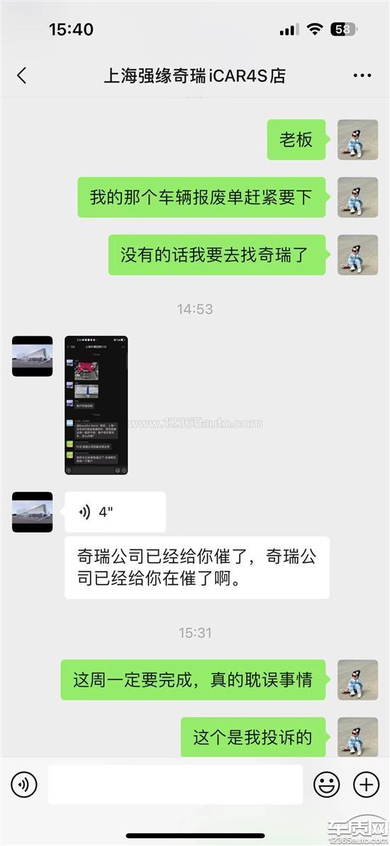 本人有一台奇瑞电动汽车作公司业务用车,因为电池组问题,维修费用较大,电池在质保期内,门店让我做报废处理。因为公司一直要用车,所以当时就让售后赶紧处理好释放额度再买一辆。7月19号给的车子,8月22号还没有结束。期间几乎天天催,一直说在处理。8月20日的时候找售后,售后主管说已经报废了,但是报废单找不到了。8月21号打了奇瑞400电话投诉,售后又说还在流程中,预计要8月29日才能结束。我说如果还不处理再投诉,售后主管回复让我这辈子买不了新能源车。我有几个疑问:1,售后经理真的有这么大权力可以让客户一辈子买不了车吗?2,售后能否给出一个明确的一个月未做报废处理的原因。3,我的车子持续一个月未处理,售后是否有违规操作,是否拿着我的报废车做转让从而领取上海市政府的二手或者报废补贴!