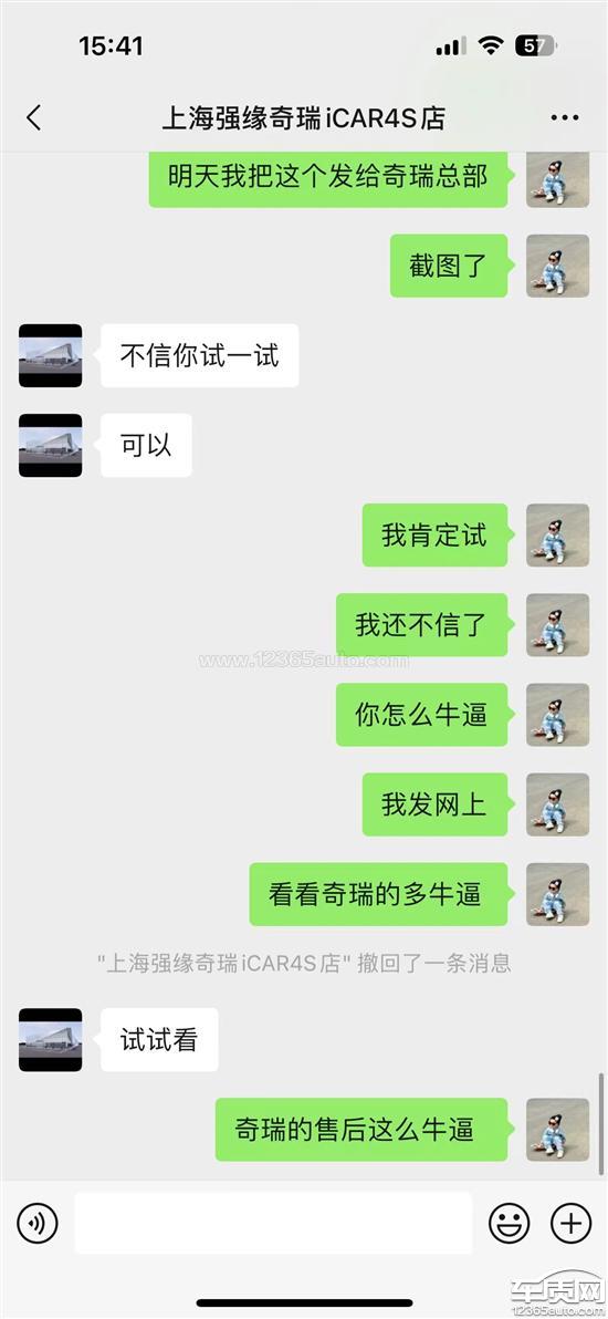 奇瑞新能源厂家回复:您的信息我们已经收到,将尽快协调就近4S店与您核实处理,厂家也将持续关注后续处理情况,感谢您的支持与谅解。后续如果您对相关4S店的解决方案有异议,可以致电奇瑞新能源服务热线400-883-8888,奇瑞新能源会积极监督/协助授权经销商合理、合法地解决您反馈的问题,也会视具体情况提供必要的技术支持。客户满意一直是奇瑞新能源的长期追求,我们也在不断提升服务,让您用车无忧。祝您生活愉快!