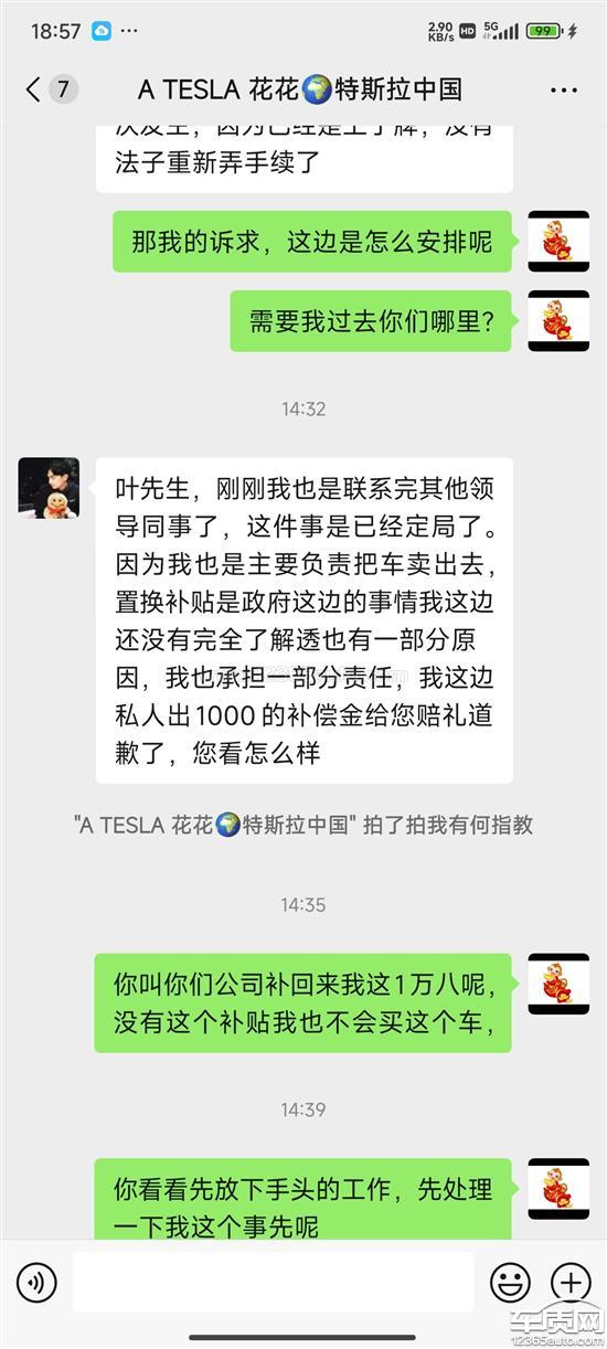购车前,销售告知有这个国家置换补贴这个政策,过户名下车辆就可以领1万八千元的置换补贴,然后名下有一两皮卡,我姐夫名下有一两小车,刚开始我是想用我姐夫的车用来做置换补贴,后面觉得麻烦,就问销售,皮卡可以进行置换吗?销售说可以进行置换补贴,然后我12月18号将名下皮卡进行过户,接着在特斯拉app下定金,于12月25号提车,27号上牌,上完牌发现皮卡是不能领这个置换补贴的,导致我不能申请这个一万八千元的置换补贴,现在销售答应给我1000块补偿,我觉得不合理。