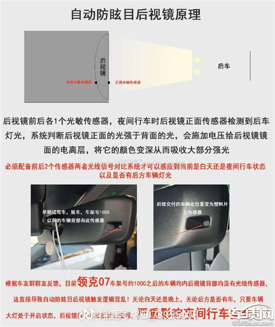 为了简配防炫目后视镜,官方给出解释说集成式后视镜与光感式后视镜分批次搭载在车上,这与配置单的自动防炫目不符。而集成式后视镜通过降低整体亮度实现防炫目,这导致低亮度的场景无法识别光线,已经多次导致夜间行车、出入隧道地库险些与行人相撞甚至发生剐蹭;整体亮度低意味着,不发光的行人,低亮度的机动车基本被过滤,无法识别。这与自动防眩目的逻辑不符,对于视线不好的车主造成严重的影响。整体降低亮度加之后隐私玻璃,更没法识别后方以及侧方的行人,威胁交通参与者的生命安全,不负责的简配行为。同批次的领克08,均采用光感式后视镜,偏偏对于销量、保有量不如08的07车主简配,强词夺理解释称是供应商的问题!!!0708后视镜均通用,凭什么就07供应商有问题。