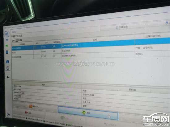 雪佛兰迈锐宝XL吹洗泵净化速度不足 故障灯亮