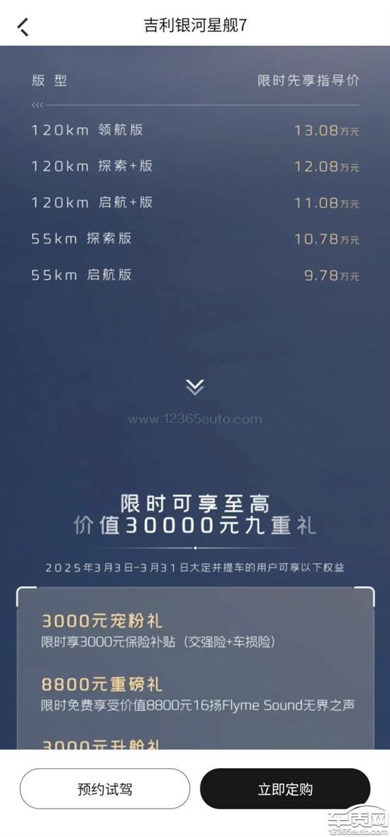 吉利汽车厂家回复:您的信息我们已经收到,感谢您对吉利银河星舰7EM-i的信任与支持。3月3日吉利银河正式升级为品牌,聚焦“百万银河规模跃升价值共享“,特别推出全系限时先享指导价活动以回馈更多的用户,旨在让更多的用户能够享受到吉利银河星舰7EM-i带来的高品质出行之旅。再次感谢您对吉利银河星舰7EM-i的持续关注与信赖!如有疑问欢迎您致电吉利汽车客户服务热线:400-886-9888。