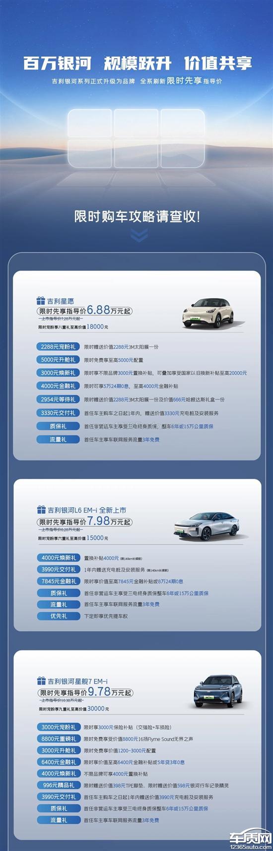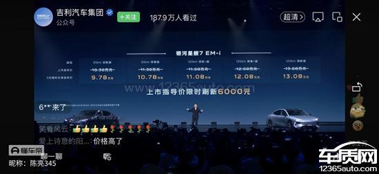 吉利汽车厂家回复:您的信息我们已经收到,感谢您对吉利银河星舰7EM-i的信任与支持。3月3日吉利银河正式升级为品牌,聚焦“百万银河规模跃升价值共享“,特别推出全系限时先享指导价活动以回馈更多的用户,旨在让更多的用户能够享受到吉利银河星舰7EM-i带来的高品质出行之旅。再次感谢您对吉利银河星舰7EM-i的持续关注与信赖!如有疑问欢迎您致电吉利汽车客户服务热线:400-886-9888。