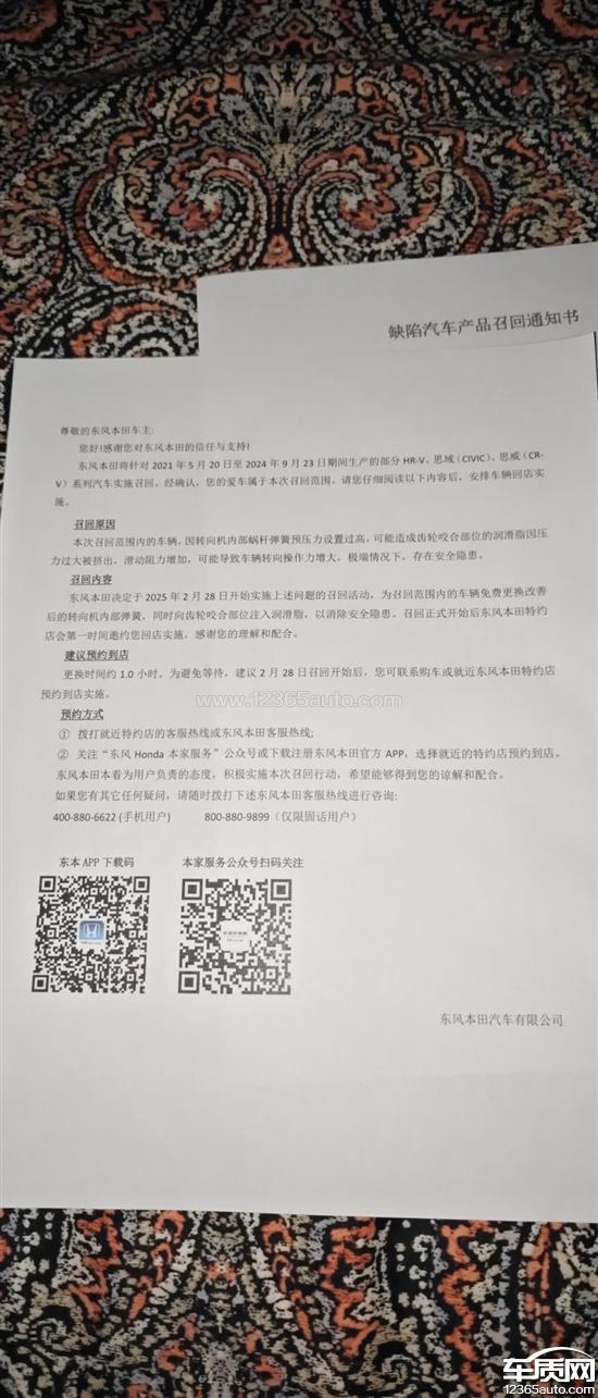 收到东风本田的召回通知。来回4s店需要250公里左右,造成的油费过路费误工费,谁来承担,打了本田售后说只是免费维修没有任何补偿。本田造成的质量问题,却把一系列的费用转嫁给消费者!