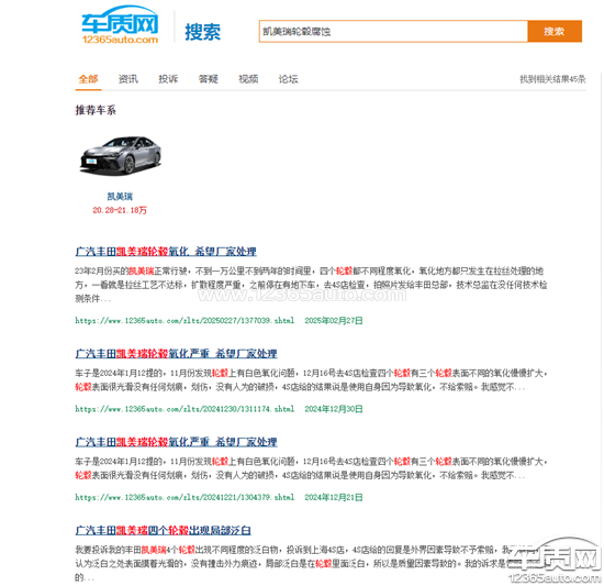 我要投诉我的丰田凯美瑞4个轮毂出现不同程车度的泛白物,投诉到淮安4S店,4S店给的质回复是外界因素导致不予索赔,投诉到广汽丰田汽车车企及广州12315,都回复非品质问题。我到第三方途虎养车咨询,途虎养车人士告诉我就是拉丝工艺不达标,我不认同4S店及车企给的答复,我认为泛白之处表面摸着光滑的,没有撞击外力痕迹,局部泛白是在轮毂里面泛白,所以是拉丝工艺不达标质量因素导致的。我的诉求是索赔4个全新的轮毂,我也查了车质网,并非我个例。恳请厂家能解决这件事情,恳求车质网能给于我帮助。谢谢。