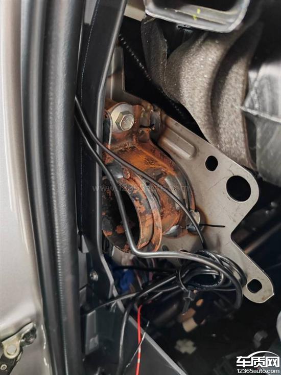 正副驾驶室侧面盖板打开即可发现,两边均是锈迹斑斑的,车辆质量严重不合格。
