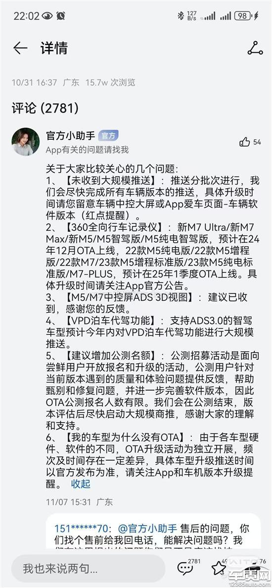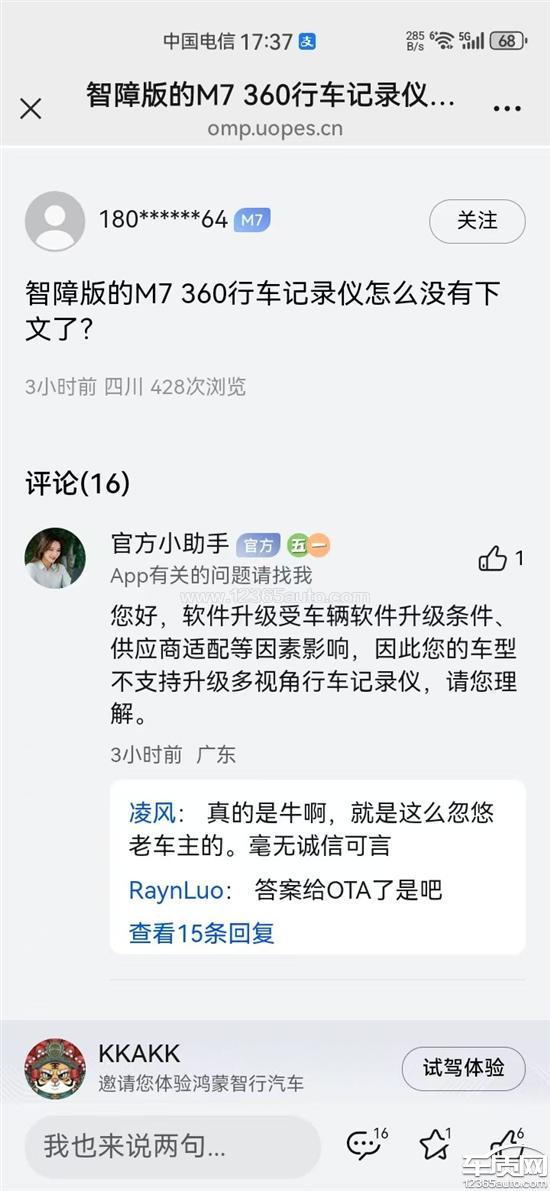 问界M7plus车型,2024年官方承诺预计2025年1季度将支持多视角行车记录仪功能。车主苦苦等待数月,现在官方一句话说不支持该功能。官方存在欺诈消费者的行为。如果不支持该功能那么官方在规划过程中就会发现,并公布。然而官方公布了预计上线时间,说明是可以支持该功能的。